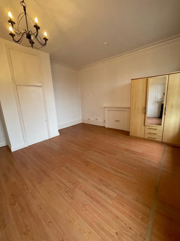 Large main studio room with large built in storage cupboard.