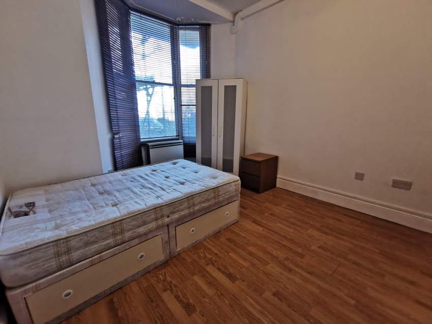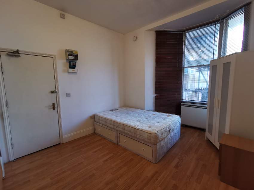 Very well presented bedsit. Ground Floor. Laminate flooring. Modern fitted kitchen with cooker and fridge. Good size room with bay window and sea-views.