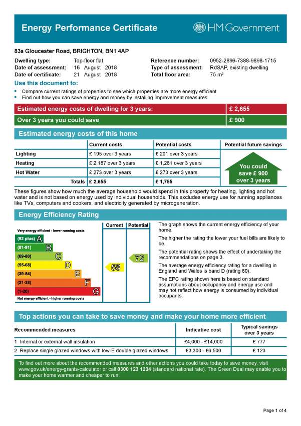 Massey are delighted to offer this recently refurbished and well presented two bedroom maisonette. Located at the top of Gloucester Road it is approx. only 300 meters from Brighton train station. The property is over three floors. Ground floor comprises a spacious entrance hallway with access to rear yard. Stairs leading to first floor with large modern kitchen with cooker, fridge and space & plumbing for a washing machine. Double bedroom. Large light and airy south facing living room. Top floor consists very large south facing bedroom, modern bathroom with ‘P’ shaped bath with shower above and smaller bedroom ideal as an office or occasional spare room. GCH