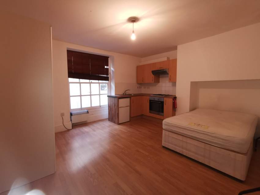 Basement Studio flat. Built in hob/oven, fridge. New shower room with mosaic tile effect walls and electric shower. Laminate flooring throughout. DOUBLE BED NO LONGER IN PROPERTY