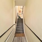 From half landing stairs to first floor with master bedroom, living room and second bedroom.