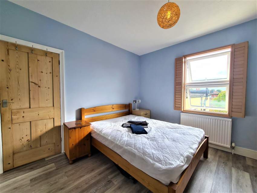 Master bedroom furnished with wardrobe, bedside tables, double bed and chest of drawers.